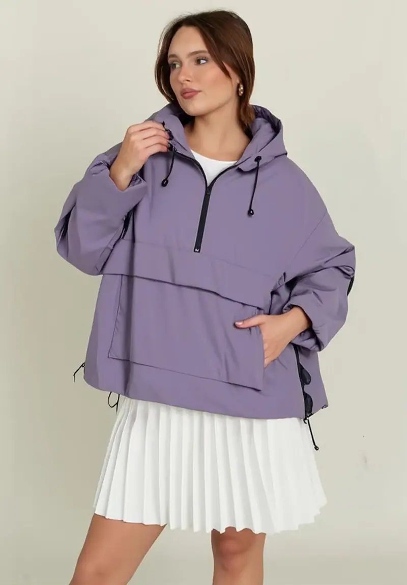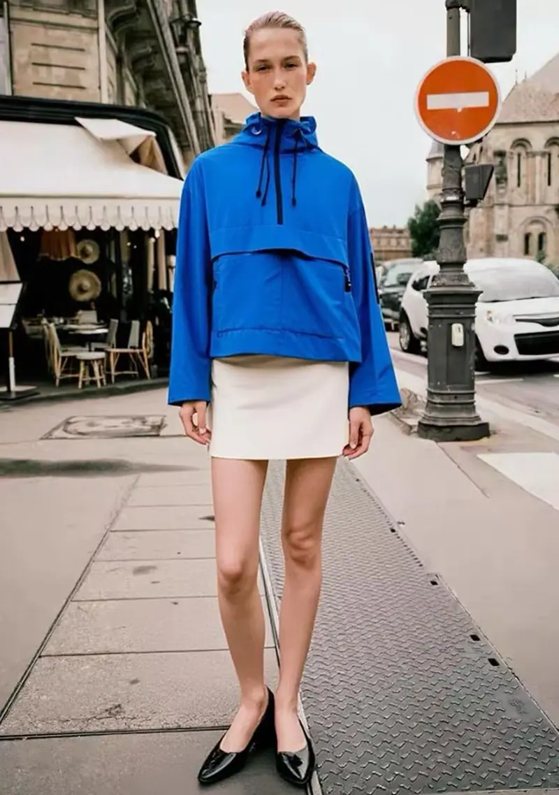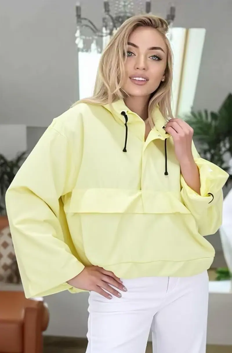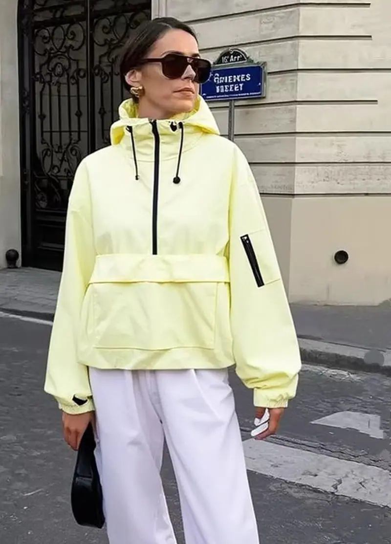 Roupa feminina transfronteiriça europeia e americana 2025 nova moda Amazon cor sólida com capuz jaqueta casual de manga comprida casaco corta-vento