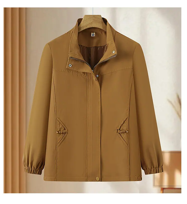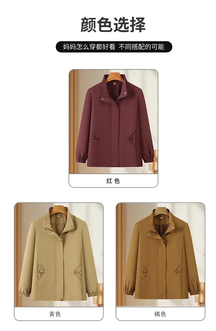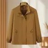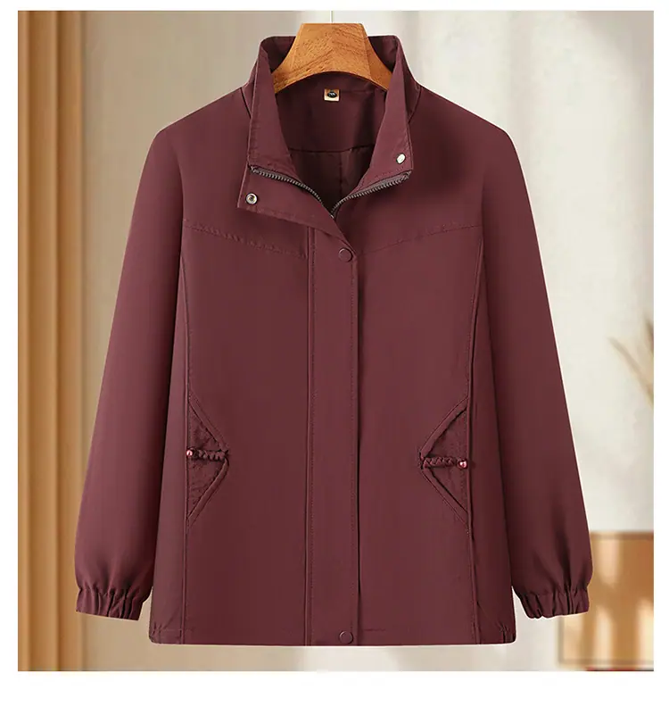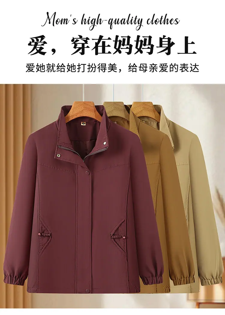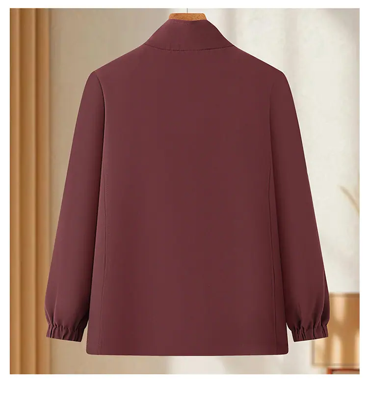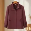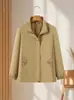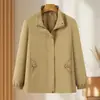 2025 Outono Nova Moda e Elegante Cor Sólida Roupas Exteriores Soltas para Meia-Idade e Idosos Jaqueta com Zíper Top Casual