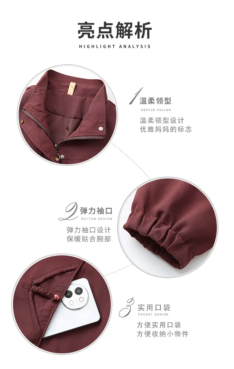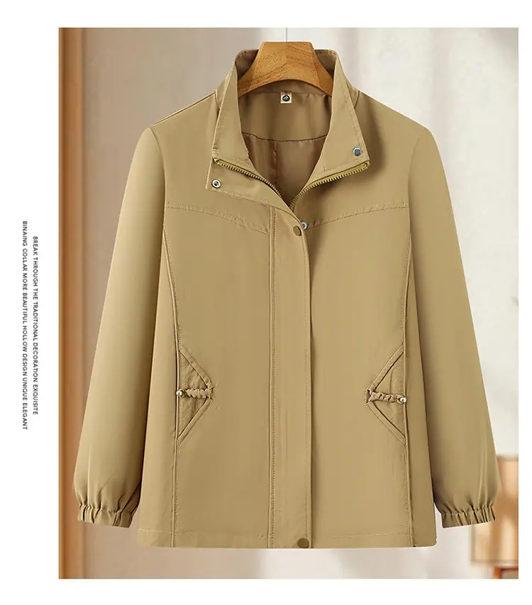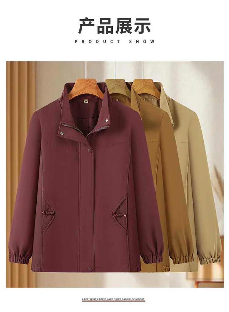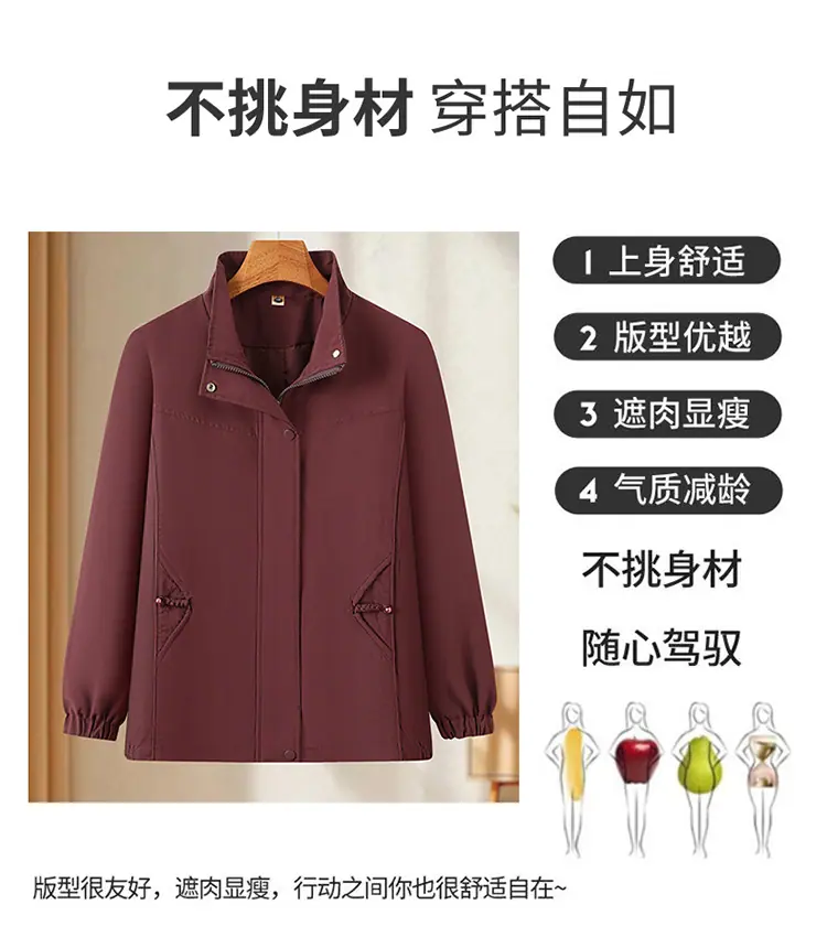 2025 Outono Nova Moda e Elegante Cor Sólida Roupas Exteriores Soltas para Meia-Idade e Idosos Jaqueta com Zíper Top Casual