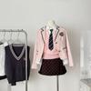 Foto Real de Conjunto Uniforme Estilo Preppy Pronto + Colete + Camisa + Saia para Mulheres