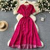 Vestido Floral de Verão Feminino de Uma Peça com Decote V, Cintura Ajustável por Cadarço e Manga Curta, para um Visual Slimming, Saia Longa Francesa