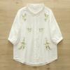 Verão 2025 Estilo Japonês Fresco Estilo Floresta Bordado Floral Tridimensional Camisa Manga Média Camisa Bordada Fio de Algodão Camada Dupla