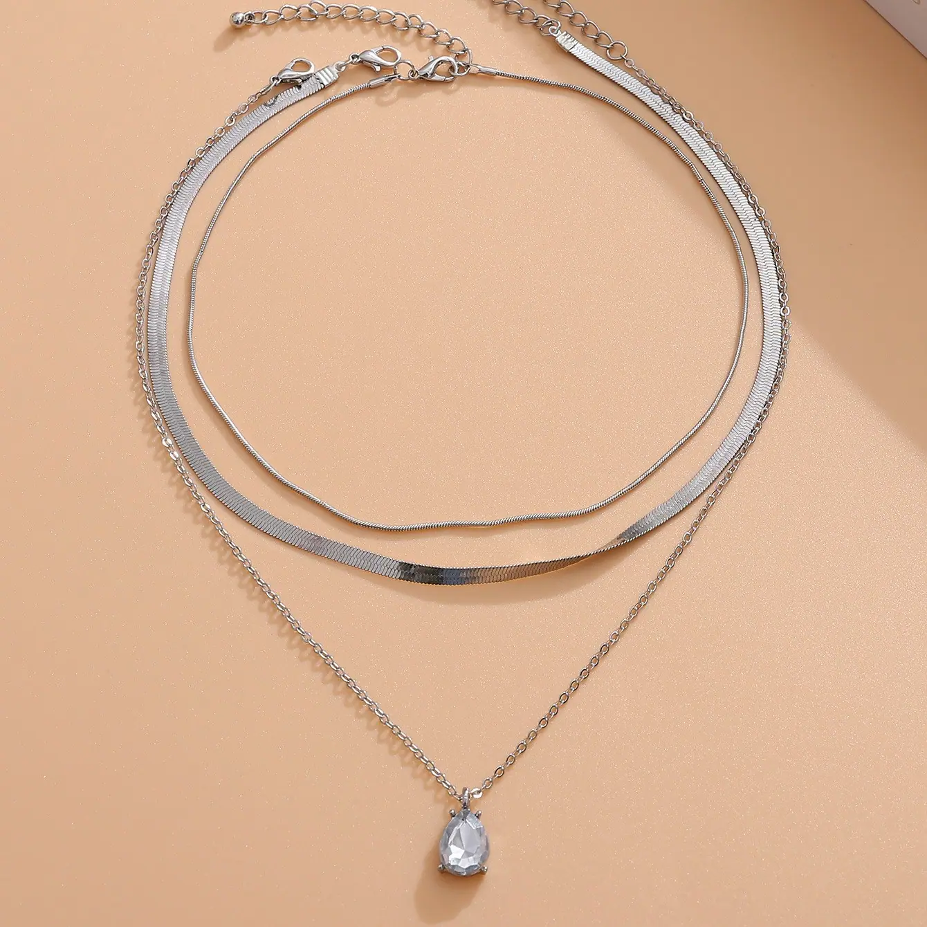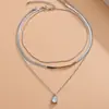 Joias Transfronteiriças Europeias e Americanas Estilo Frio em Camadas Temperamento Corrente para Clavícula Doce Cool Simples Metal Nicho Colar Gota de Água Atacado