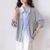 Casaco Fino Tricotado Spliced Falso de Duas Peças para Mulheres Outono Inicial Novo Estilo Top de Design Preguiçoso