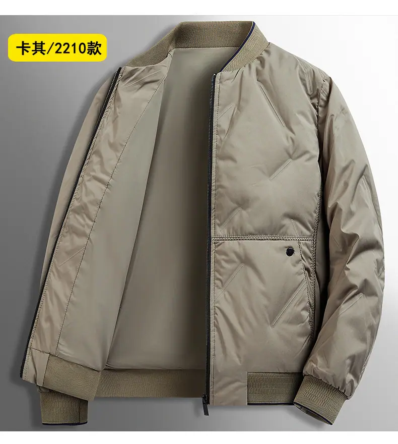 Jaqueta Leve de Penas Masculina Estilo Outono/Inverno Simples Gola Alta Curta Quente Jaqueta de Penas