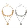 Colar étnico transfronteiriço europeu e americano, liga, concha, pingente de vieira, colar versátil com textura metálica, colar de camada dupla