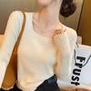 Malharia Tricotada Fina, Novo Top de Outono para Mulheres, Camisa Básica com Gola Quadrada, Malharia Curta e Slim