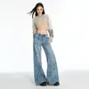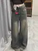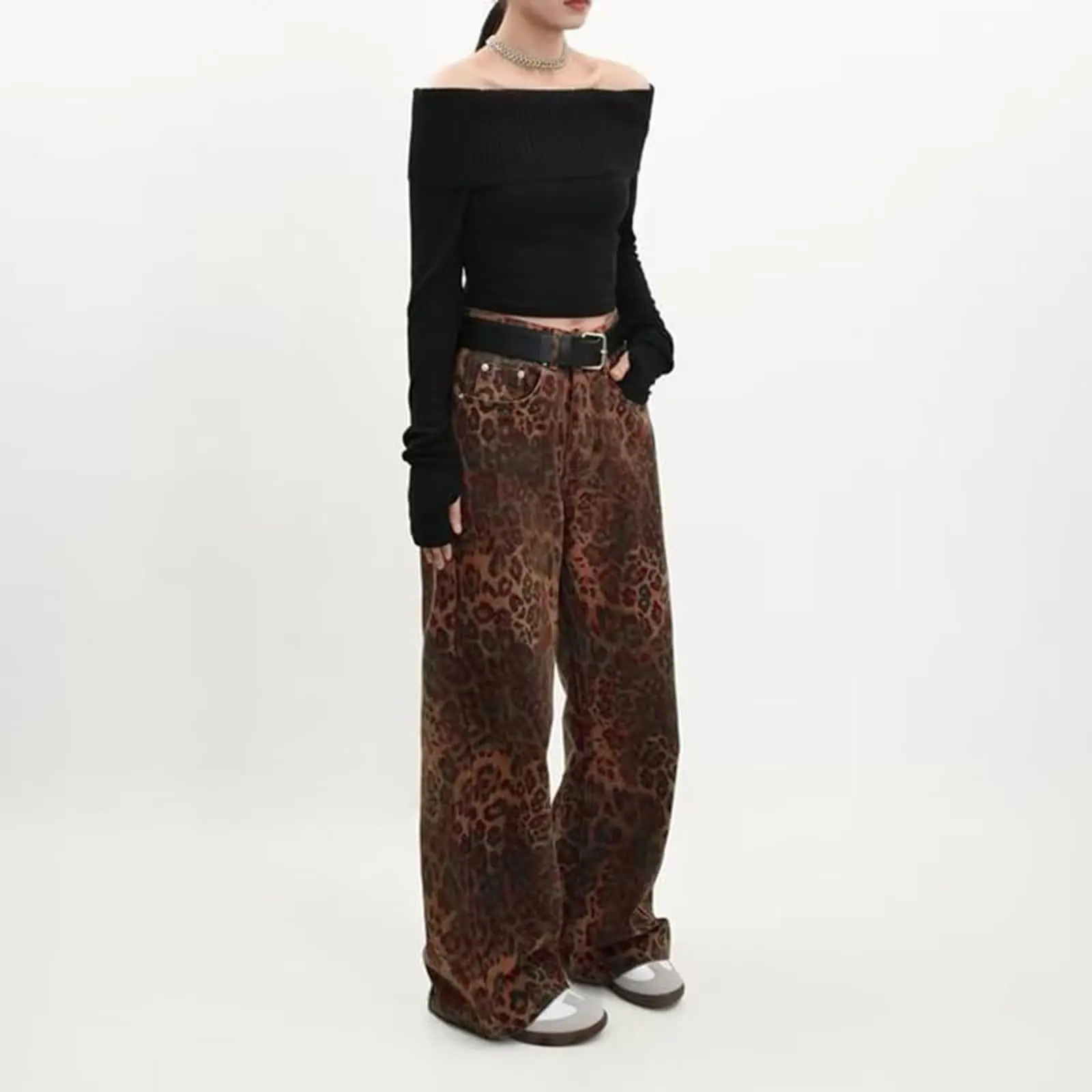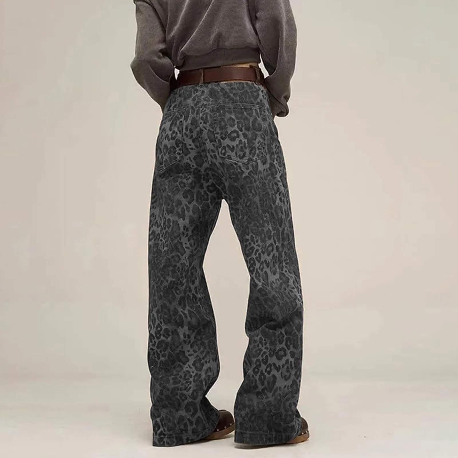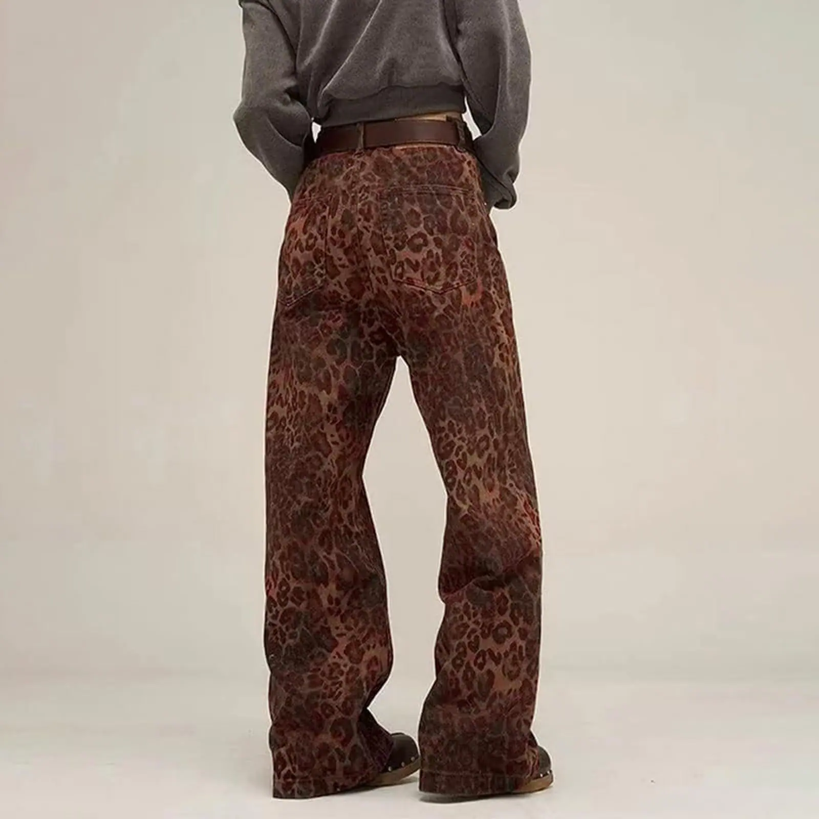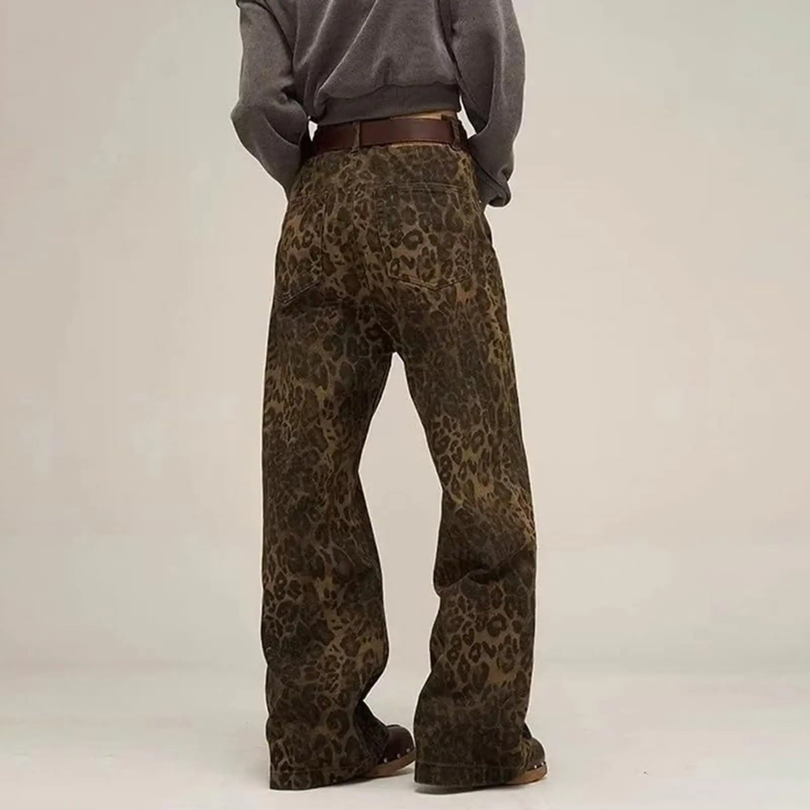 Jeans Estampa Onça Retrô Americana Emagrecimento Perna Reta Solto Casual Calças Perna Larga