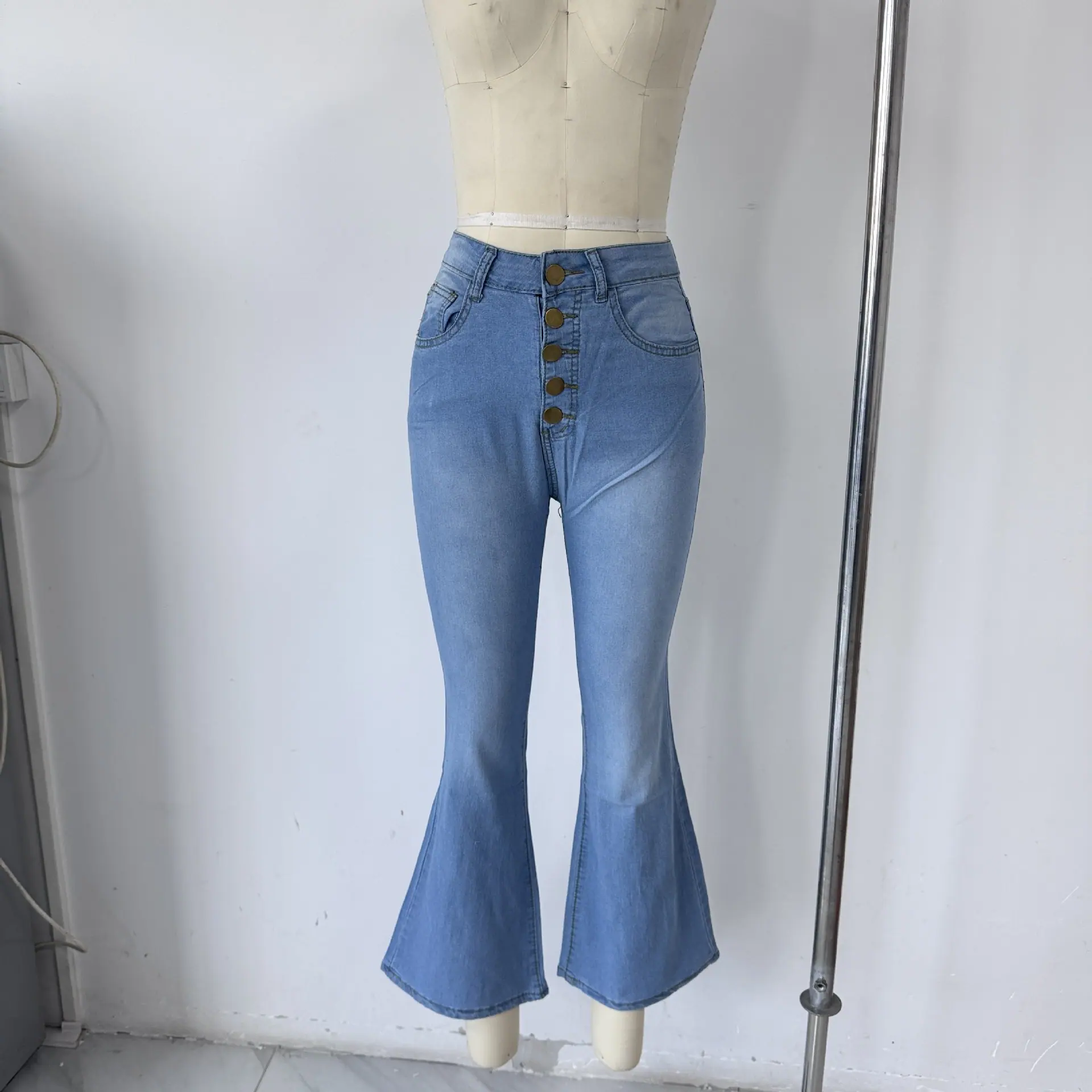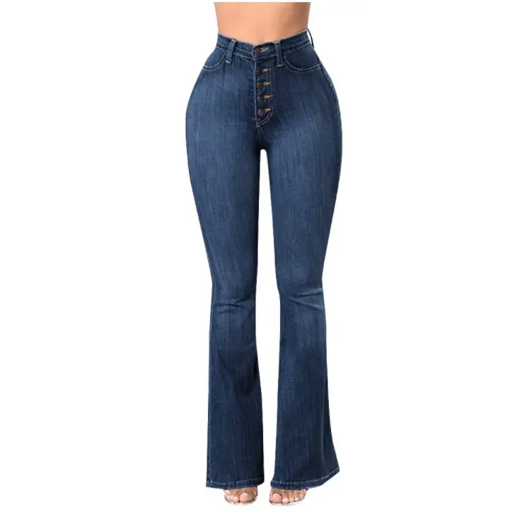 Fornecimento Transfronteiriço de Comércio Exterior Europeu e Americano Jeans de Cintura Alta Elásticos de Perna Larga para Mulheres
