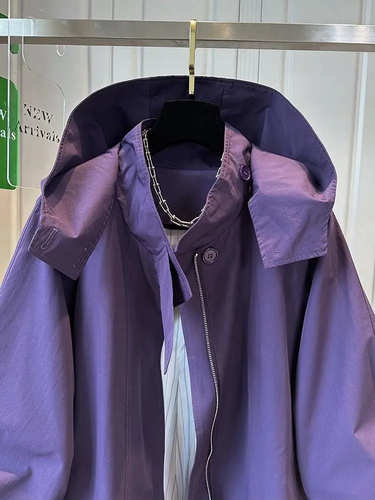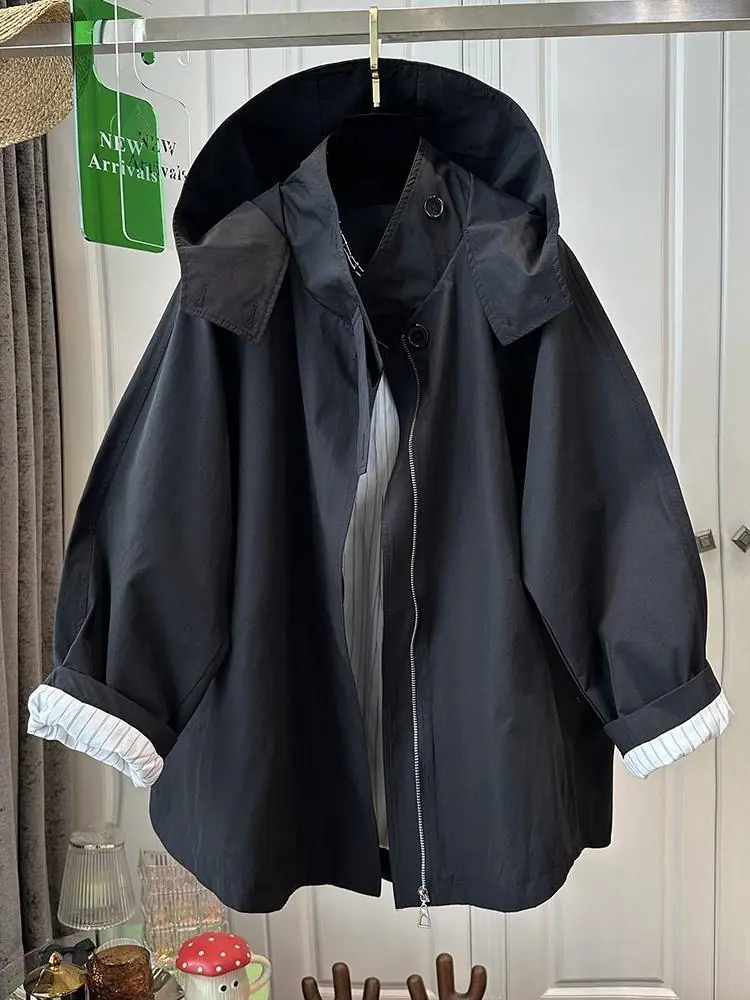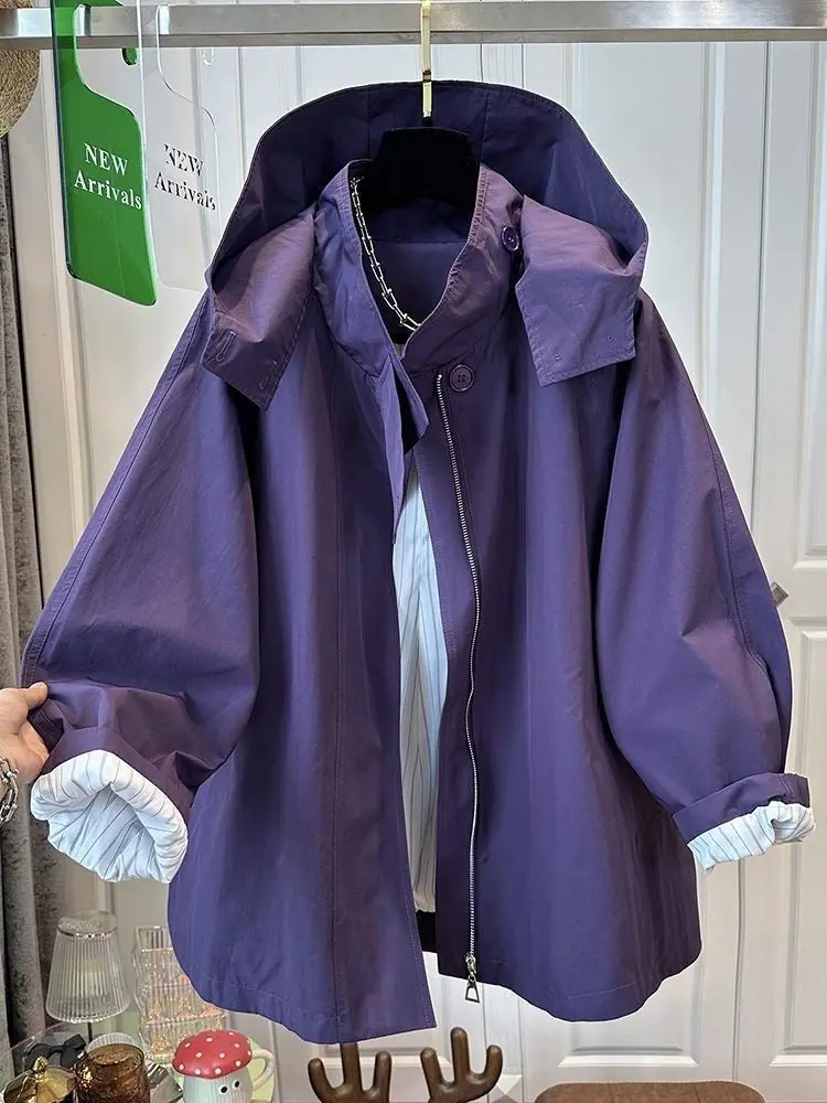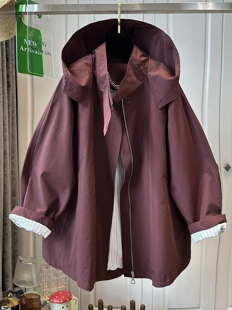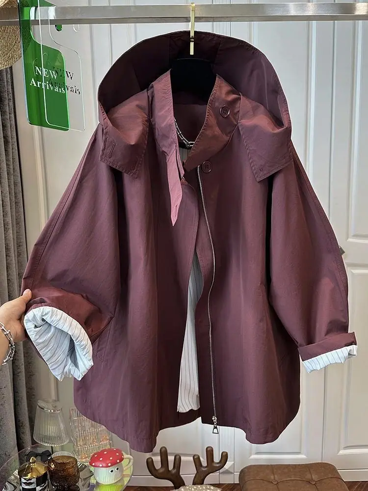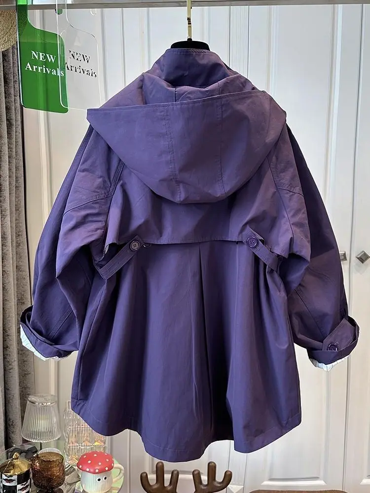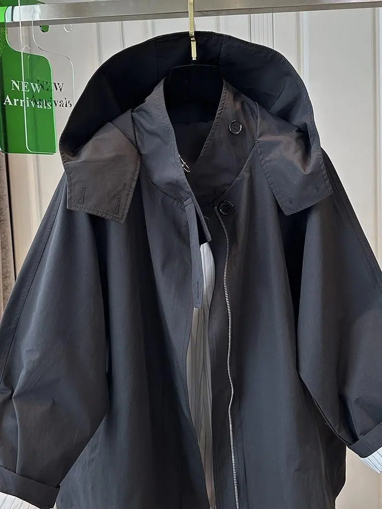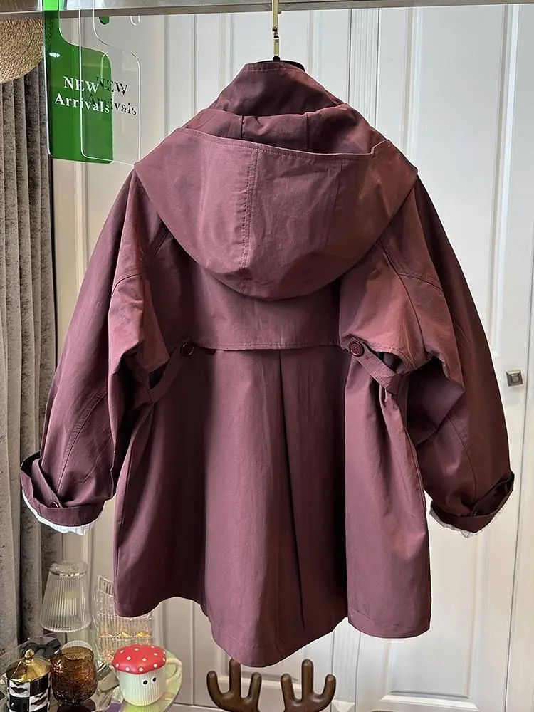 Senso de design corta-vento casual com capuz de cor sólida mulheres 2025 primavera e outono nova moda estilo estrangeiro top versátil maré