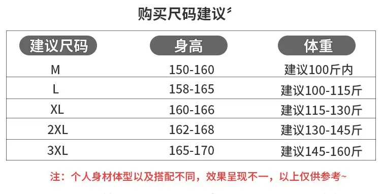 M (recommended within 100 catties), L (recommended 100 catties - 115 catties), XL (recommended 115 catties - 1...