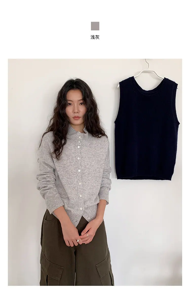 Mulan Simples Relaxado Tricô Manga Longa 2025 Treze Linhas Outono Novo Temperamento Cardigã de Lã 56869