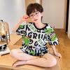 Pijama infantil de verão fina de manga curta para meninos, roupa de casa de desenho animado para bebês médios e grandes, roupa de exterior