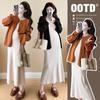 Roupa de Maternidade Outono e Inverno Novo Casaco Espessado de Moda Coreana Vestido de Suspensório Tricotado Terno de Maternidade de Duas Peças