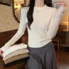 Blusa Base Feminina Gola Média Alta Estilo Coreano Nova Primavera Outono Inverno Roupa Íntima Ajustada Manga Longa Tricô Fino Cor Sólida Blusa Base