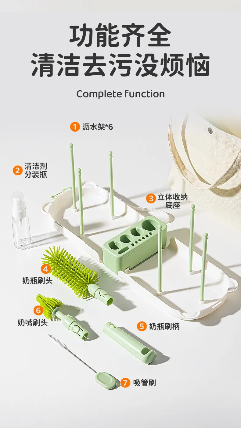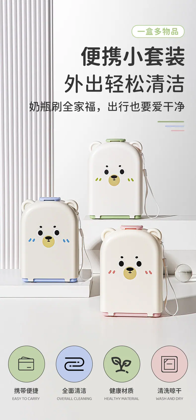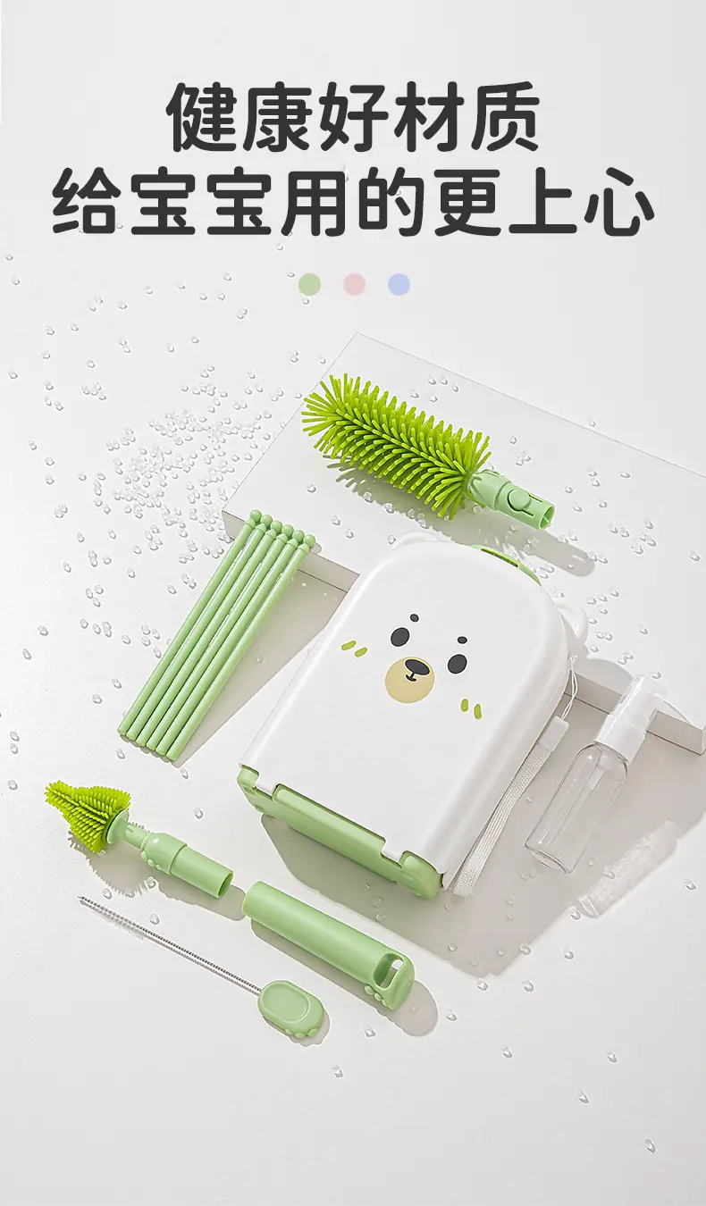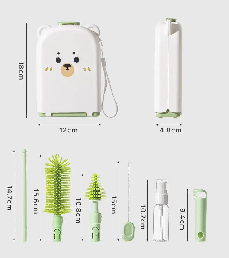 Escova de Mamadeira Portátil para Bebê Escova de Bico Bebê Recém-Nascido Especial Escova de Limpeza de Mamadeira Conjunto de Ferramentas de Limpeza de Silicone