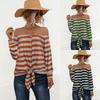 Outono 2021 Roupas Femininas Estação Independente Amazon ebay Venda Quente Botão no Ombro Tira Decorativa Top Listrado