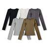 Camiseta de Cachemir de Cuello Redondo y Manga Larga para Mujer Otoño Nueva Francesa Ajustada Ceñida para Mujer Camisa Base Sexy Americana
