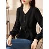 Design 2025 Tops Chic de Nicho Acinturados para Mulheres Primavera & Outono Manga Longa Alto Padrão Estilo Estrangeiro Redutores de Idade Camisas Petite