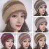 Boina Feminina de Inverno Nova Tricotada Moda Listrada Bloco de Cores Camada Dupla Espessa Quente Confortável Chapéu Macio