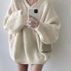 Suéter de Tricô Quente de Comprimento Médio com Mangas Longas, Gola V Solta, Estilo Preguiçoso, Outono/Inverno 2026 para Mulheres