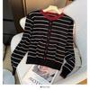 Suéter de Gola Redonda com Listras Contrastantes Estilo Coreano para Mulheres no Outono e Inverno Solto, Despojado e Sofisticado Top Versátil Jaqueta Cardigã Tricotada