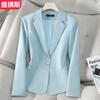 Nova Roupa de Outono 2025 Jaqueta Elegante e Versátil Feminina de Alta Qualidade Azul Claro para Trabalho Casual Manga Longa Terno