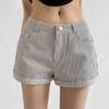 Shorts Sexy de Cintura Baixa 2025 Verão Nova Moda Versátil Hot Girl Alongadores de Pernas Listrados Finos Jeans Atacado