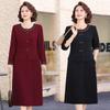 Vestido de Duas Peças Estilo Chinês Slim de Comprimento Médio para Feriado de Primavera e Outono, Manga Longa, Temperamento, Vestido de Outono para Mãe