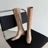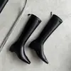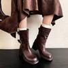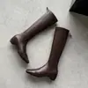 Botas Martin de couro genuíno outono e inverno cor sólida versátil salto baixo salto quadrado tamanho grande botas femininas couro de vaca bico quadrado novas botas de cano alto femininas