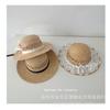 Chapéu de Palha Infantil Novo para Férias na Praia Antissol Chapéu de Sol de Praia de Copa Reta Chapéu de Palha Designer com Laço de Amarrar
