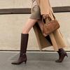 Outono e Inverno Novo Estilo Simples Salto Olho de Gato Bota Cavaleiro Reta Bico Francês Elegantes Botas Femininas de Cano Alto