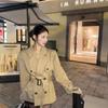 Trench Coat Cáqui Estilo Britânico para Mulheres, Novo Casaco Curto Elegante Acinturado para Primavera e Outono, Blazer Street Fashion