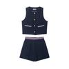 Conjunto Verão 2025 Novo Europeu e Americano Transfronteiriço Feminino Casual Fantasia Detalhe Colete + Shorts w03 6654