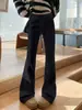 Calças Casuais Micro Flare com Bainha Babado para Mulheres 2025 Novo Outono Finas Dobradas Cintura Alta Emagrecimento Flare Calças Longas