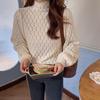 Camiseta básica de renda escovada com gola média alta para mulheres, outono/inverno, manga bufante moderna, roupa interior 2025 primavera/outono, novo estilo, top damasco