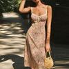2025 Estilo de Férias Transfronteiriço Europeu e Americano Doce Moda Tendência Desejo Puro Sexy Renda Costurada Vestido Floral de Alças