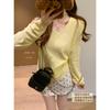 Tricô de Manga Comprida Decote V Versátil e Elegante Estilo Francês Leve para Mulheres na Primavera e Outono Camada Interna Solta Estilo Roupa de Trabalho Tricô Base