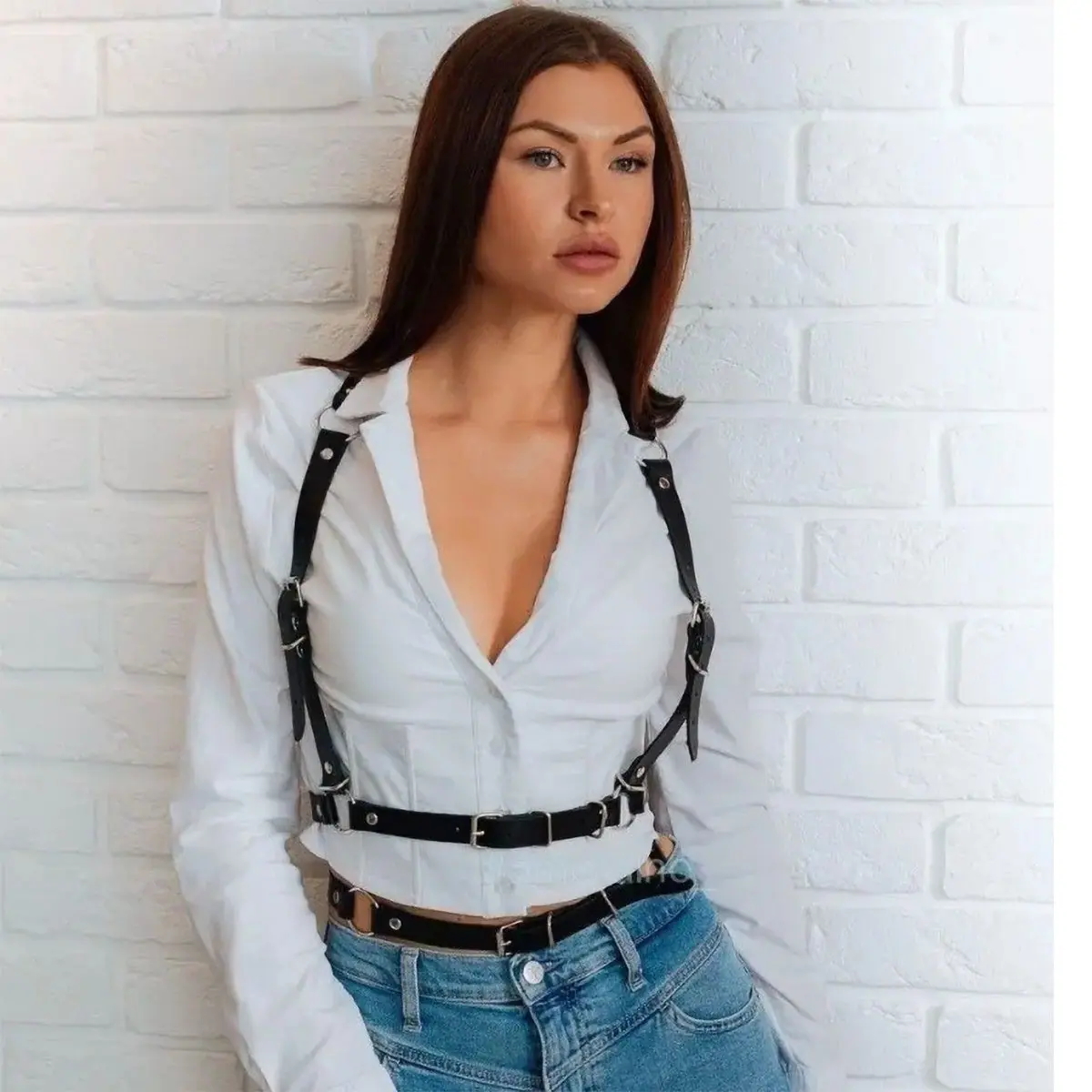 Girdle ins punk suspenders leather shoulder straps shirt suspenders nightclub bar wear cos
