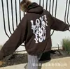Suéter com capuz forrado de lã para mulheres outono e inverno 2023 novo estilo coreano solto top fashion estampado com letras pequenas