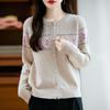 Jaqueta de Tricô Cinza com Gola Redonda Estilo Preguiçoso Nova Coleção Primavera/Outono Transfronteiriça para Mulheres, Solta e Estilosa, com Combinação de Cores