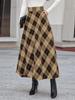 Transfronteiriça Europeia e Americana Nova Outono Feminina Cintura Alta Emagrecimento Xadrez Saia A-line Festa Casual Solta Rodada Saia Longa