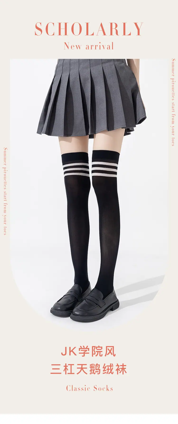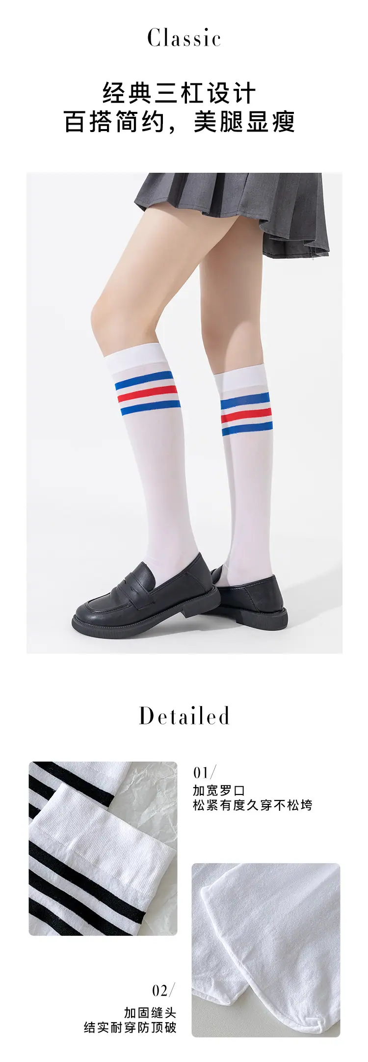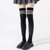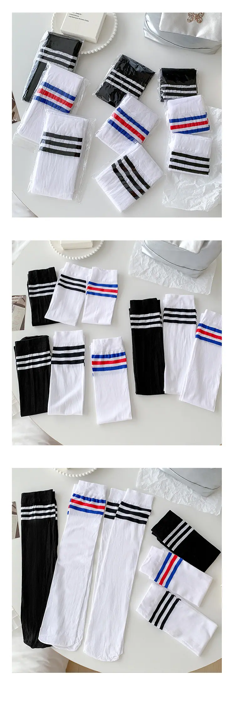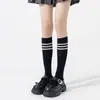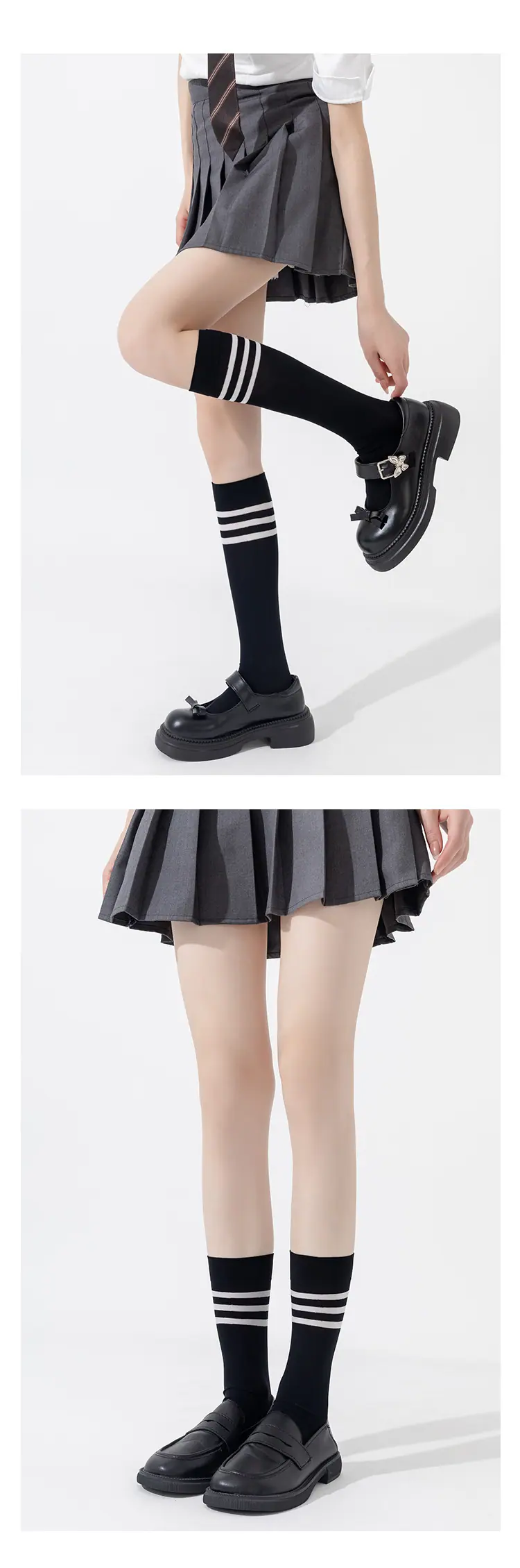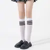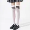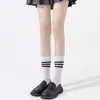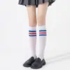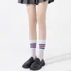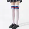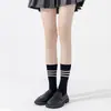 Meias de Bezerro de Veludo Primavera/Verão Finas Estilo Colegial Meias Longas até a Metade Acima do Joelho Jk Padrão Japonês de Três Listras