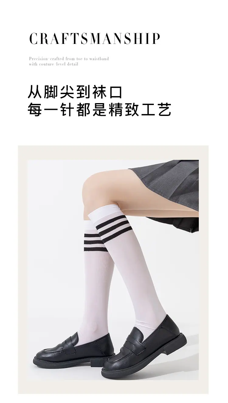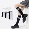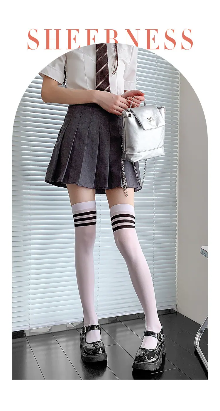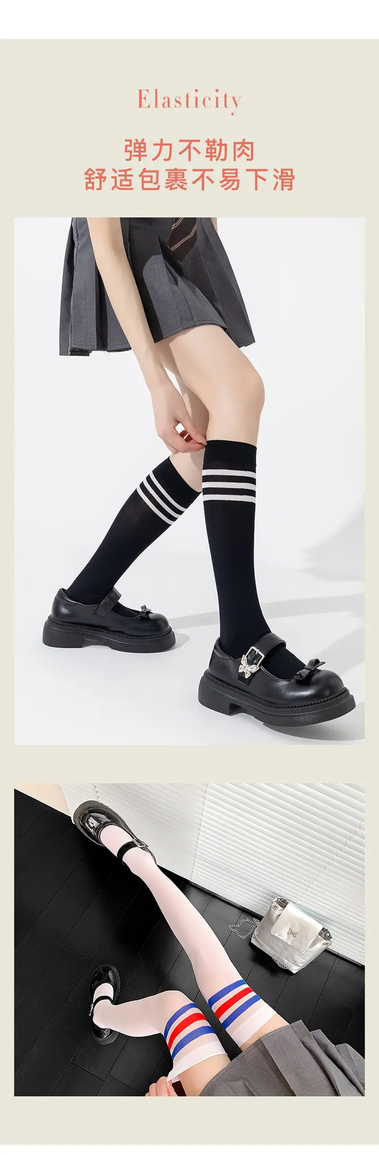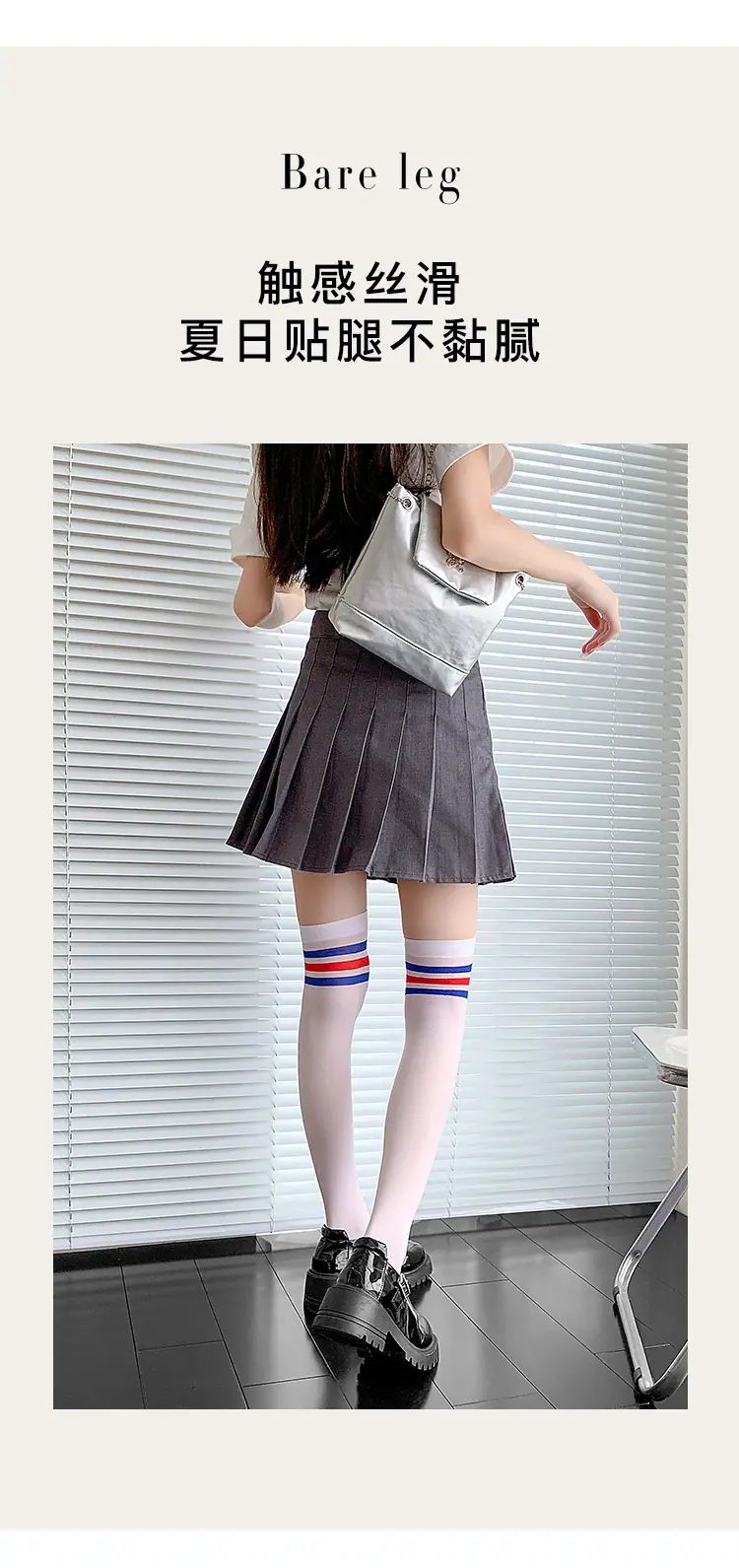 Meias de Bezerro de Veludo Primavera/Verão Finas Estilo Colegial Meias Longas até a Metade Acima do Joelho Jk Padrão Japonês de Três Listras