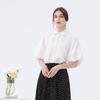 Camisa de Algodão com Bordado de Coração Decote V Abotoada 2025 Verão Novo Estilo Doce Camisa Manga Três Quartos Moderna Transfronteiriça