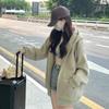 Cardigan Tricotado Feminino Solto com Capuz e Bloco de Cores Novo para Primavera e Outono 2025 Casaco Suéter Curto com Zíper Exterior da Moda