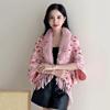 24 Estilos de Casacos de Outono e Inverno, Xale de Tricô Quente na Moda, Mangas Morcego, Xadrez Colorido com Gola de Pelo, Poncho Cardigan com Franjas
