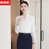 Outono Novo Traje de Negócios Elegante Roupa de Trabalho Top Decote V Camiseta Básica Camisa de Chiffon Camisa Branca de Manga Comprida para Mulheres