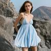 Moda Feminina Estilo Europeu e Americano Transfronteiriço Vestido Curto Solto de Alças em Camadas Sem Costas de Cor Sólida para Férias