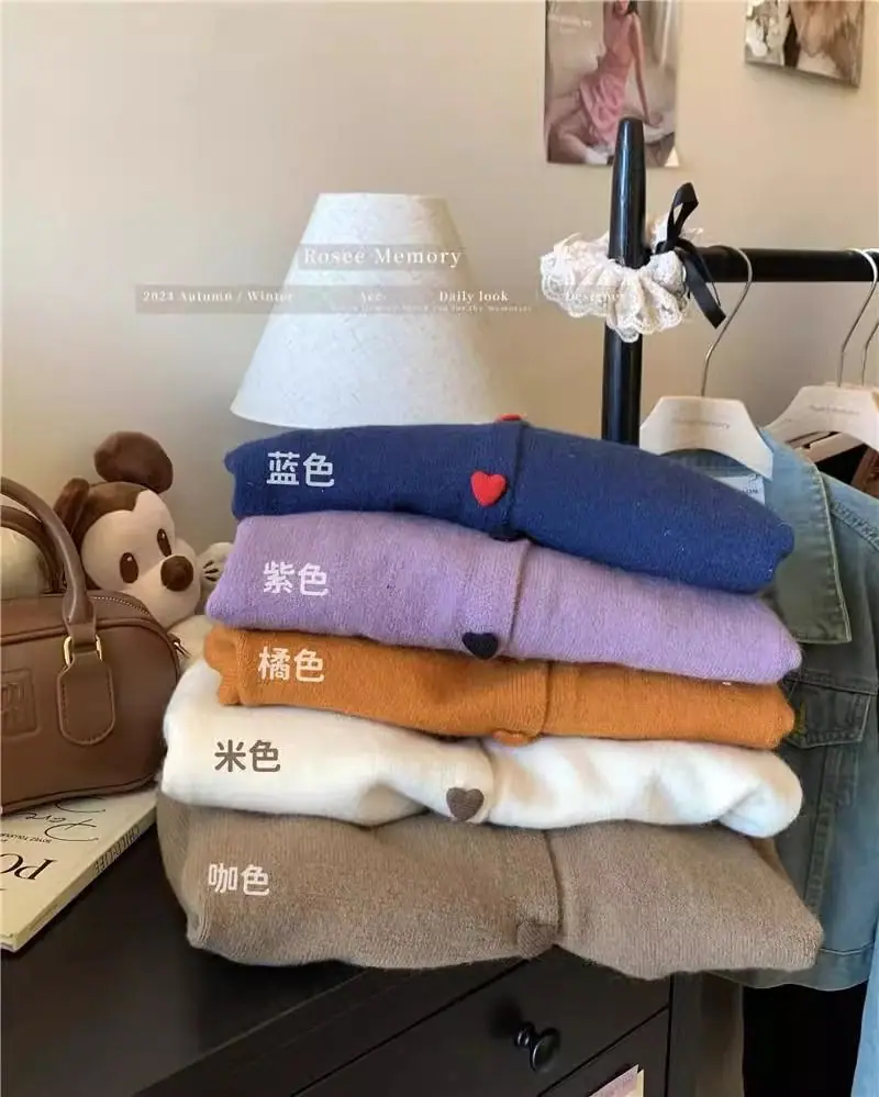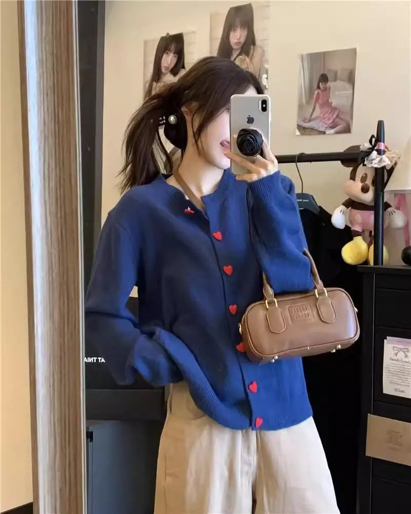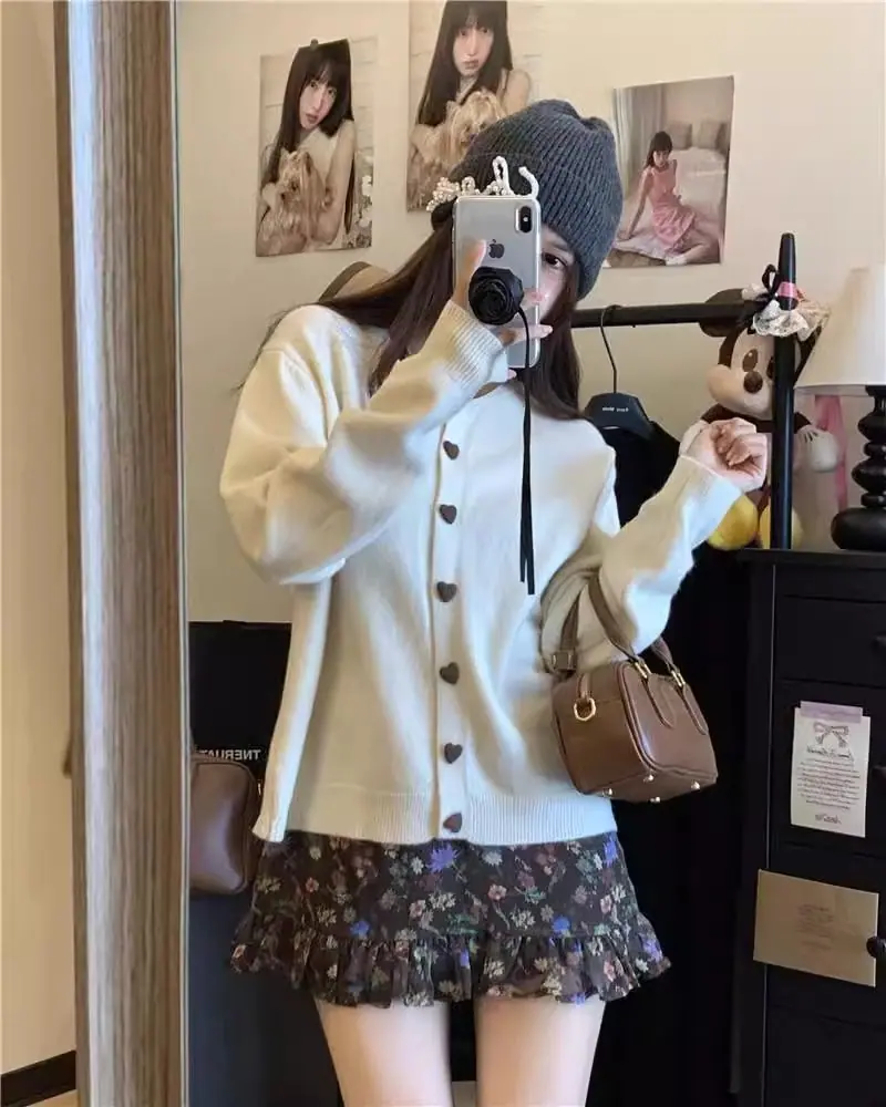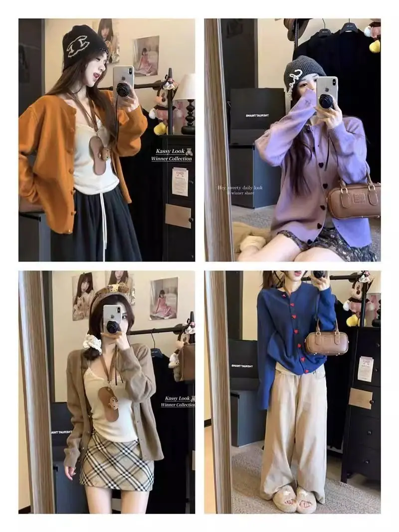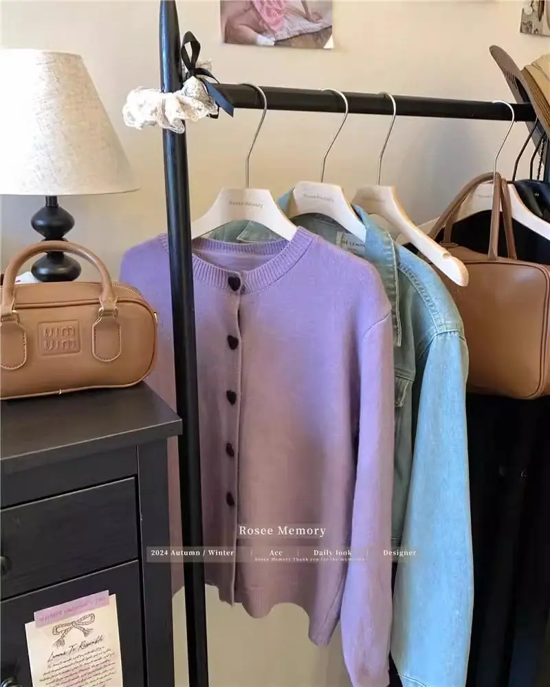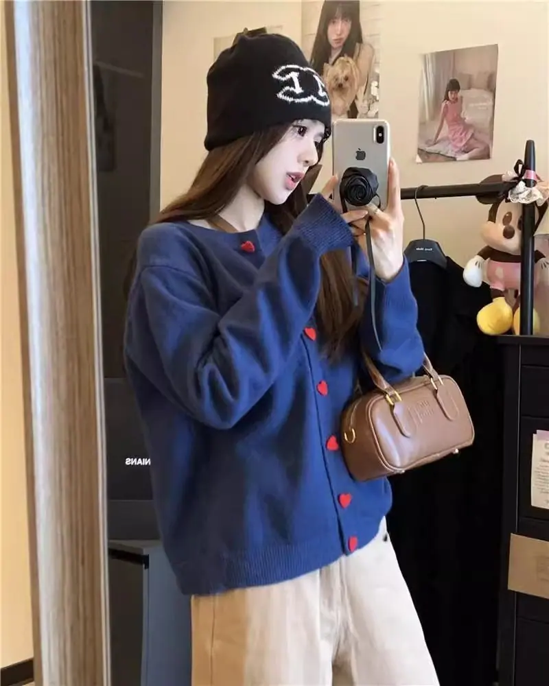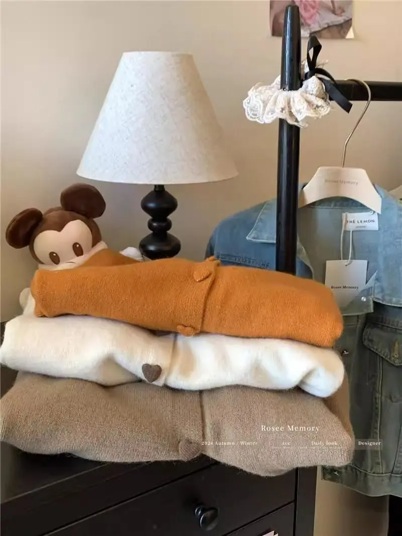 Cardigã de malha de algodão cashmere feminino outono manga longa suéter casaco estilo coreano abotoamento simples gola redonda solto top roupa exterior